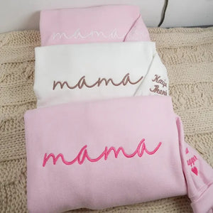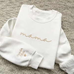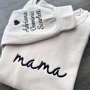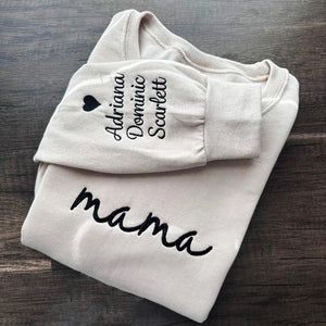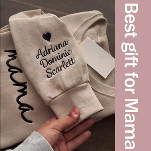 Custom mama Embroidered Sweatshirt with Kids Names on Sleeves | Mother's Day Gifts