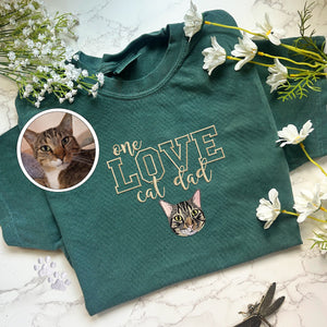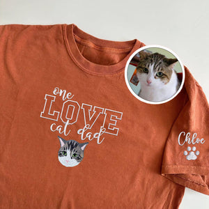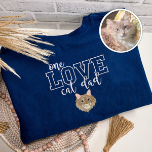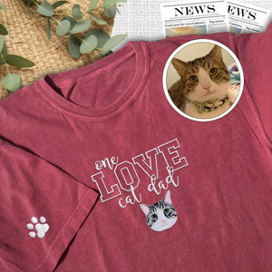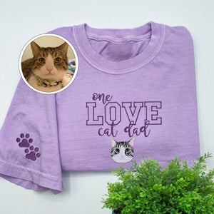 Custom One Love Cat Dad Embroidered T-Shirt | Gift For Pet Lovers
