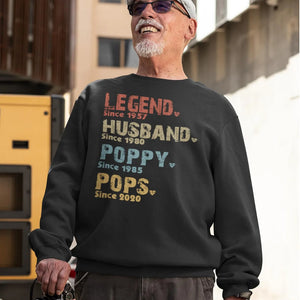 💖Celebrate the legendary man in your family with our "Legend, Husband, Dad And Papa Since [Year]" personalized custom apparel, the perfect way to honor his multifaceted role in your life.