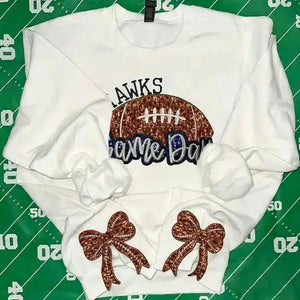 Personalized Sequin Embroidery Football Sweatshirt With Side Bows
