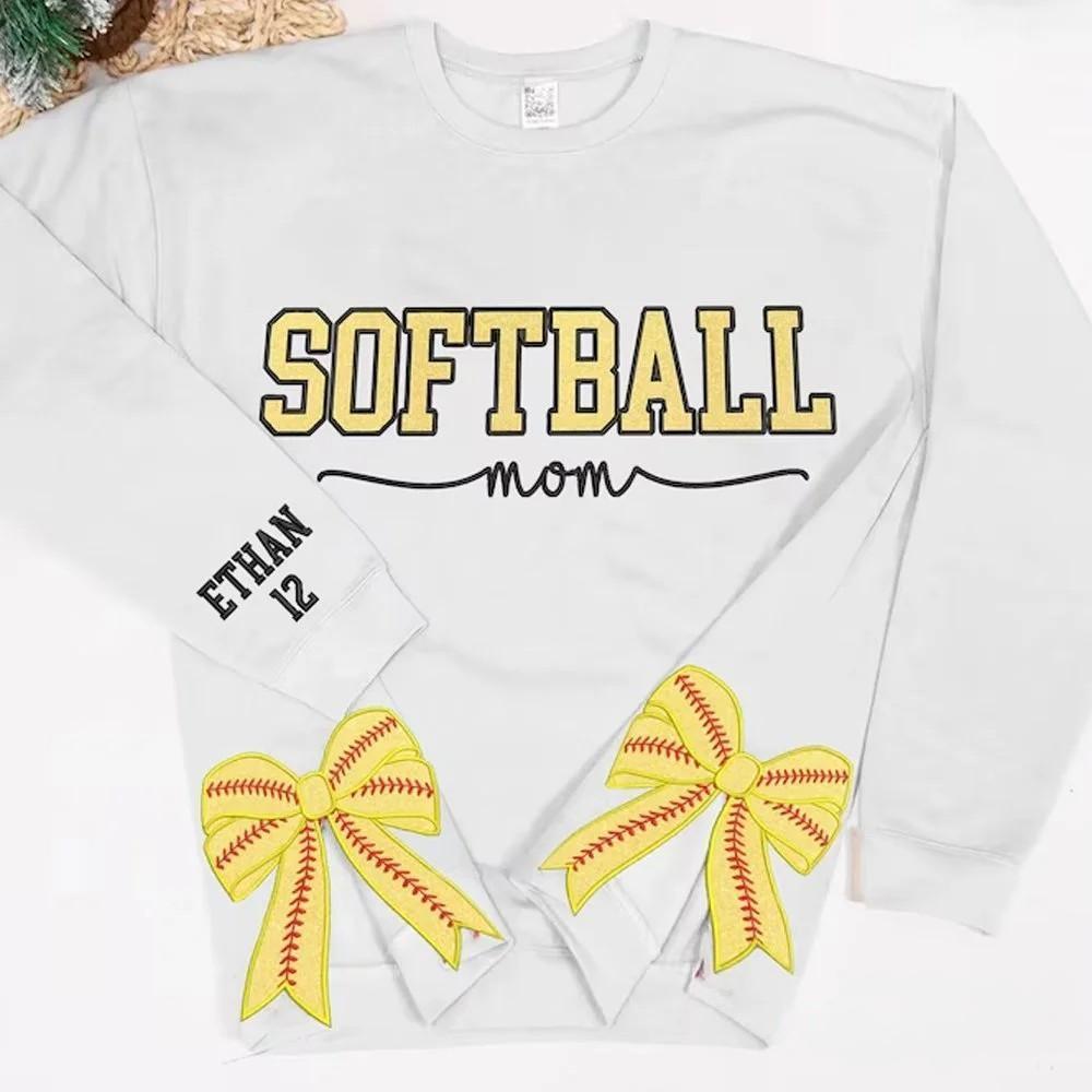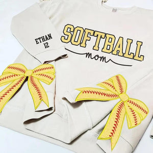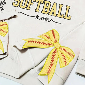 Personalized Softball Mom Side Bow Sweatshirt Glitter Embroidered Coquette Sweatshirt