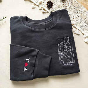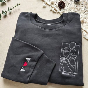 Custom Father's Day Embroidered Portrait Photo Sweatshirt With Initial On Sleeve