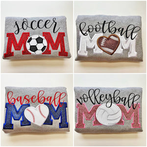 Custom Glitter Ball Sports Moms Embroidered Sweatshirt