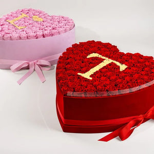Heart Glitter Rose Box With Initial Couple Gift