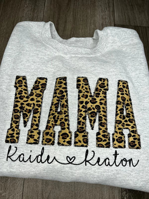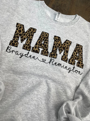 Custom Mama Embroidered Leopard Applique Sweatshirt With Children Name | Mother's Day Gift