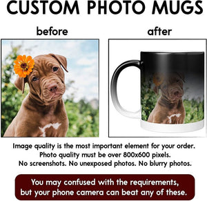 ☕【Magic Color Change】When the cup is cold, it is dark black. When you start pouring hot water, the image you added starts to show from the bottom. Just show off with heat, amazing discoloration! Personalized cups turn back to black when cooled and cycle forever. Personalized magic mug perfect for your favorite hot/cold beverages.